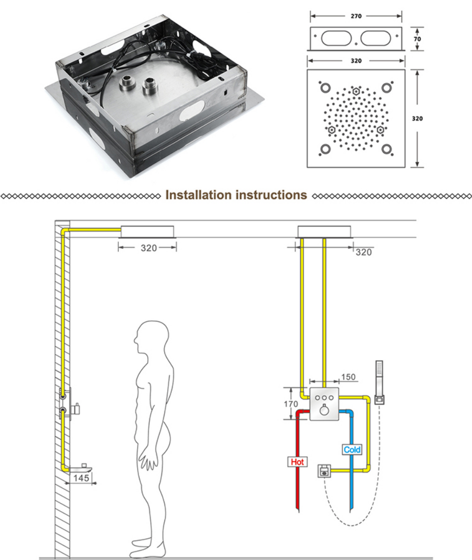 Le panneau ciel de pluie Ouranos est avant tout un ciel de pluie qui donne un aspect futuriste à votre salle de bain. Les petites dimensions de son panneau entrent parfaitement dans une petite salle de bain. Par ailleurs, sa robinetterie est dotée d’un système push très facile à utiliser.