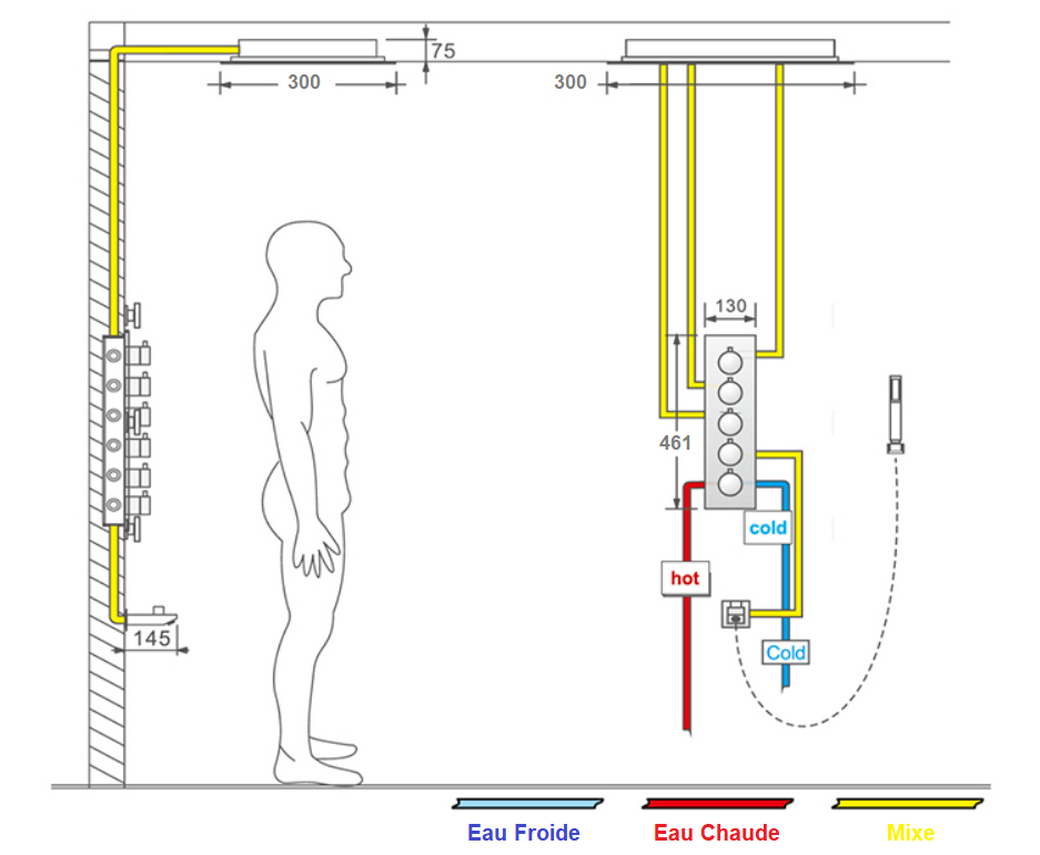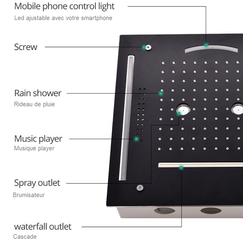 Le panneau de douche est équipé d'un éclairage LED avec fonction Chromothérapie. Une technique dont l’objectif est de stimuler les sensations afin de rétablir les déséquilibres générés par le stress quotidien et/ou favoriser des états d’esprit plus positifs. Les couleurs ravivent notre bien-être et sont l’apanage de plusieurs spécialités de médecines alternatives et traditionnelles.