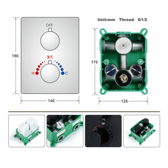 Notre robinet thermostatique mural à 3 fonctions, noir mat, est fabriqué en laiton avec une finition mat. Ce robinet thermostatique est équipé d'un inverseur à 3 voies.